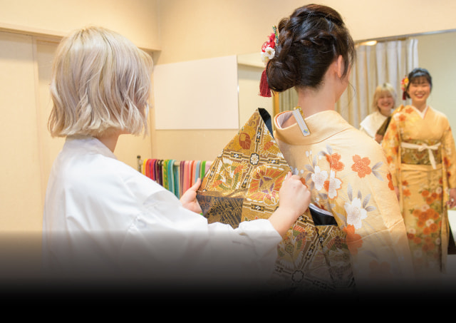 毎年の成人式では170名以上の振袖の着付けを担当します。