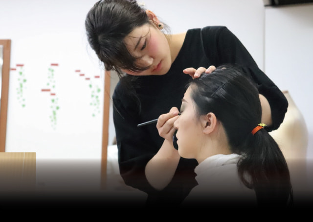 アシスタントからメイクを学び、コンテスト、関西コレクションなどでモデルのメイクを担当します。常にスキルアップする現場があります。
